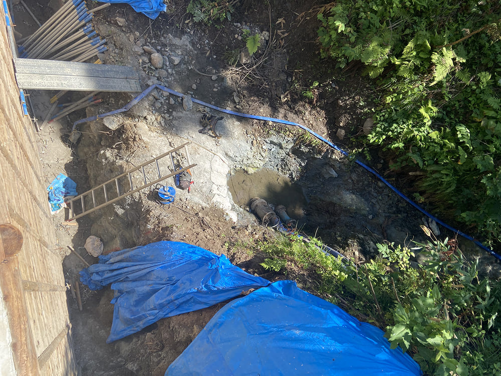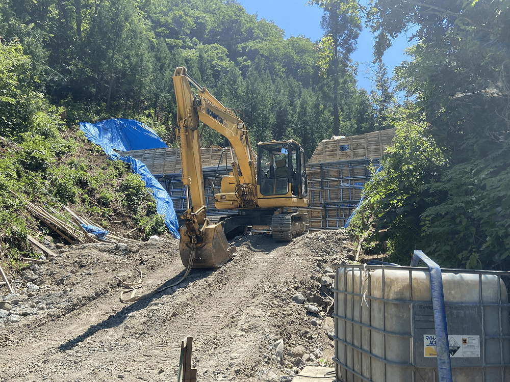 前回のブログでは、「治山工事がいよいよ始まりました」とお伝えしていましたが、あれから作業は順調に進み、現在は“埋め戻し”の工程を残すのみとなりました。